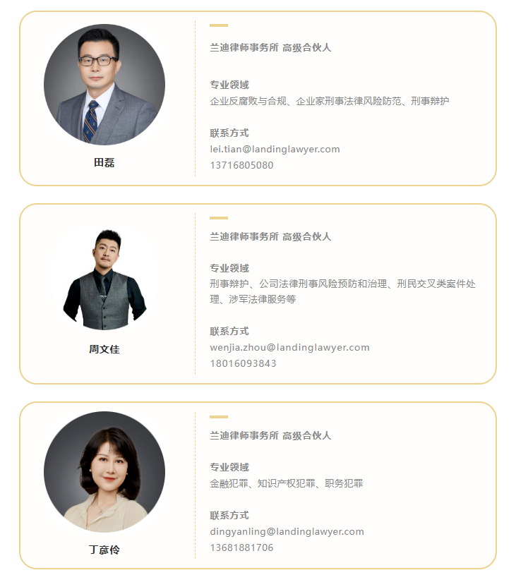 兰迪律师事务所入选律新社《精品法律服务品牌指南(2025):商业犯罪领域》律所名录,并荣获“律新社2025年度商业犯罪领域品牌影响力律所”。兰迪律师事务所高级合伙人田磊律师、周文佳律师、丁彦伶律师入选律师名录并荣获“品牌之星:匠心律师”。