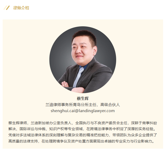 2026年3月27日,《亚洲法律杂志》(Asian Legal Business, ALB)发布了“2026 ALB China 区域市场排名:环渤海地区”榜单。兰迪律师事务所凭借卓越的区域服务能力和出色的市场表现再度荣登该榜单;兰迪律师事务所青岛分所主任、高级合伙人蔡生辉律师获评“客户首选律师”。此次入选,充分彰显了兰迪及兰迪律师在环渤海地区不断提升的影响力和客户的高度认可。