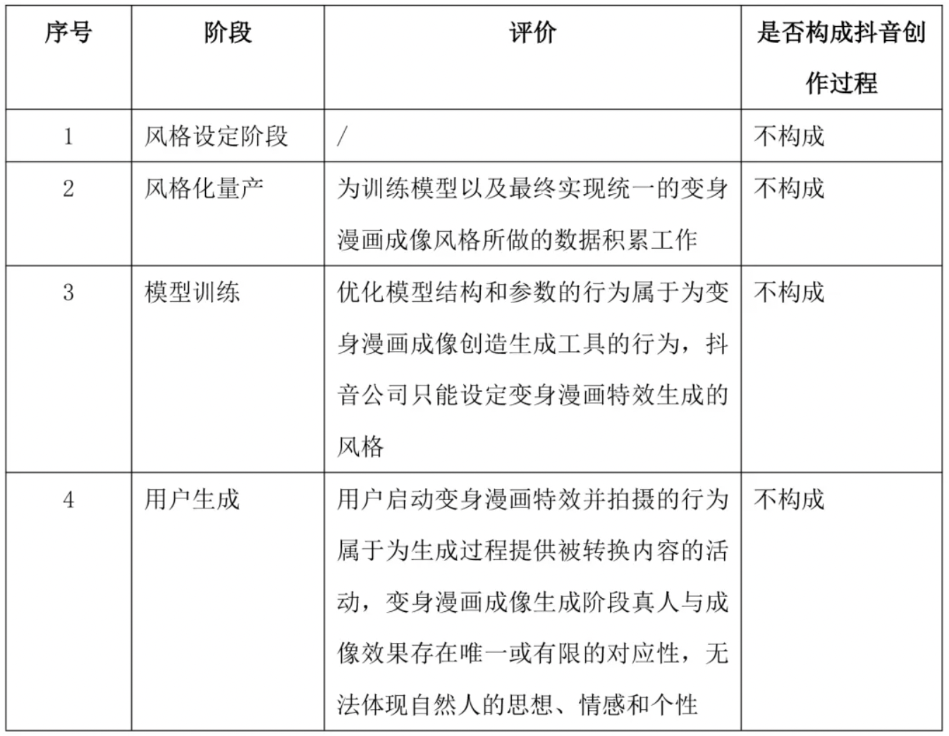 基于上述背景,法院对于抖音的模型研发过程加上最终用户使用过程这四个阶段对于生成模型结构与参数而言是否构成创作,具体分析如下: