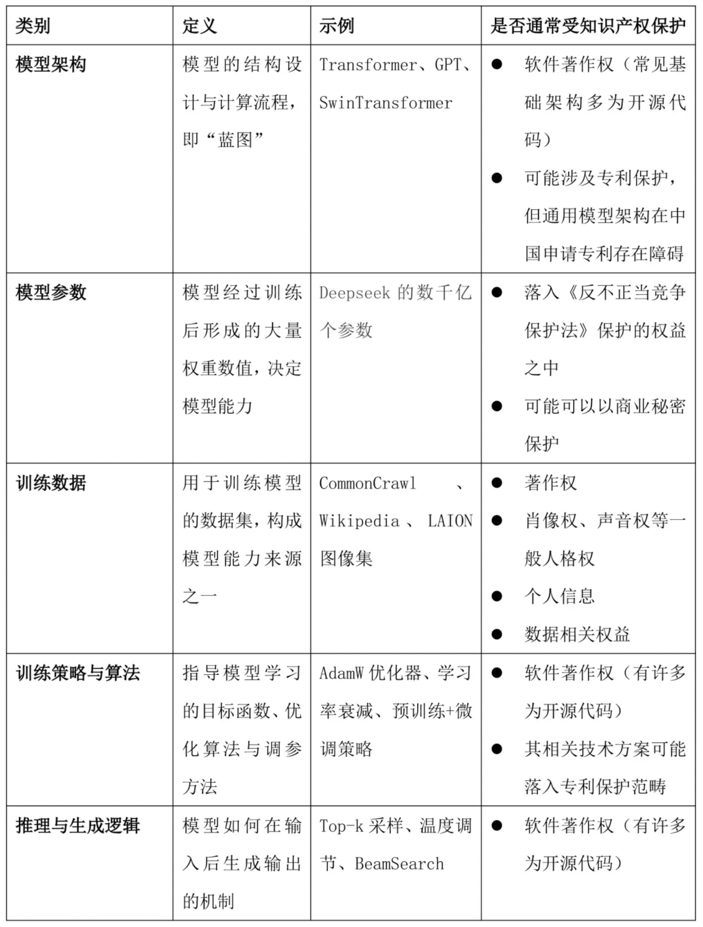二、大模型的各主要组成部分可能构成何种权利客体,受到何种保护?
