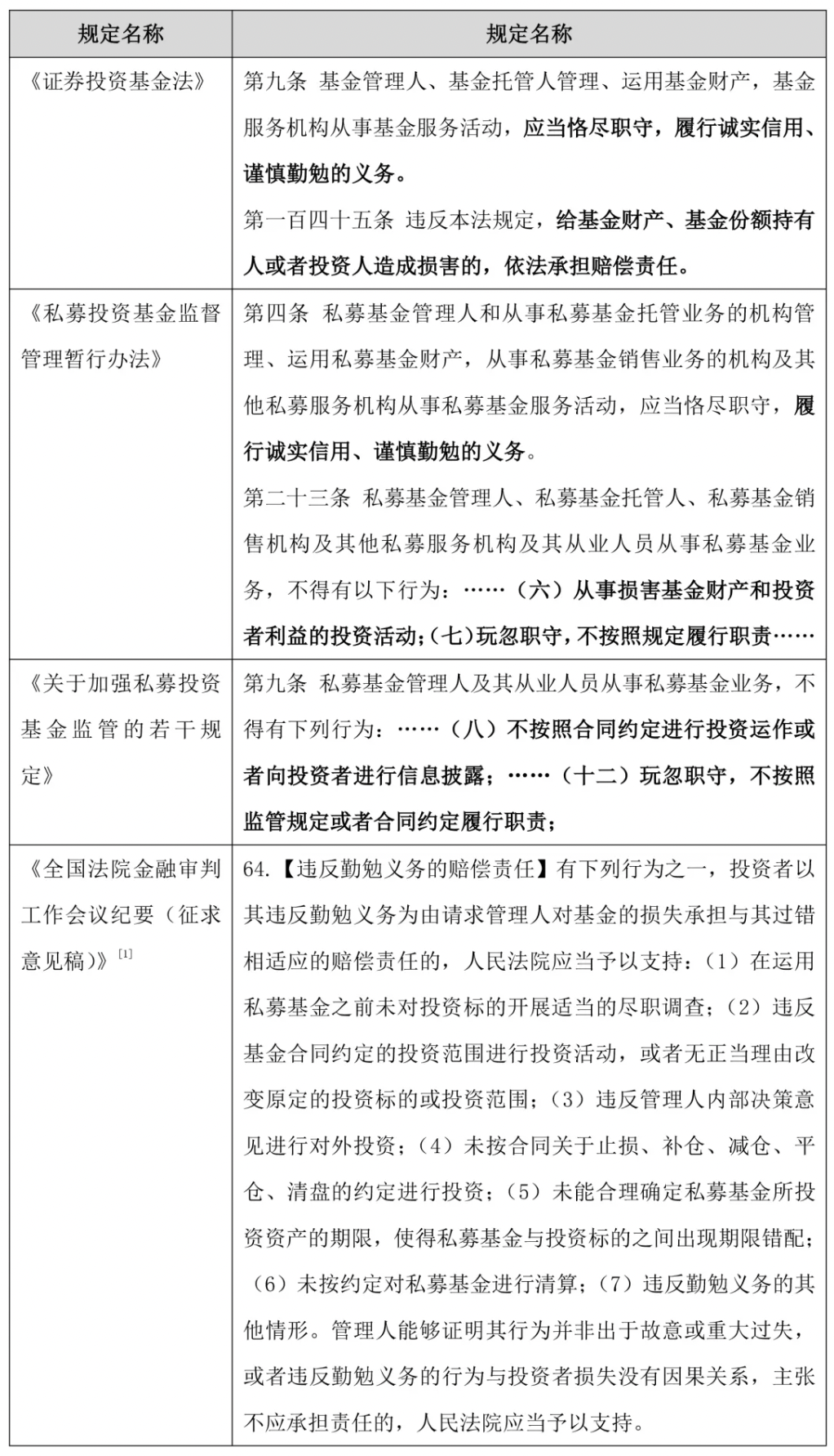 [1]该文件为征求意见稿,目前并未生效,但能从侧面反应人民法院对基金管理人勤勉尽责义务的审查标准。