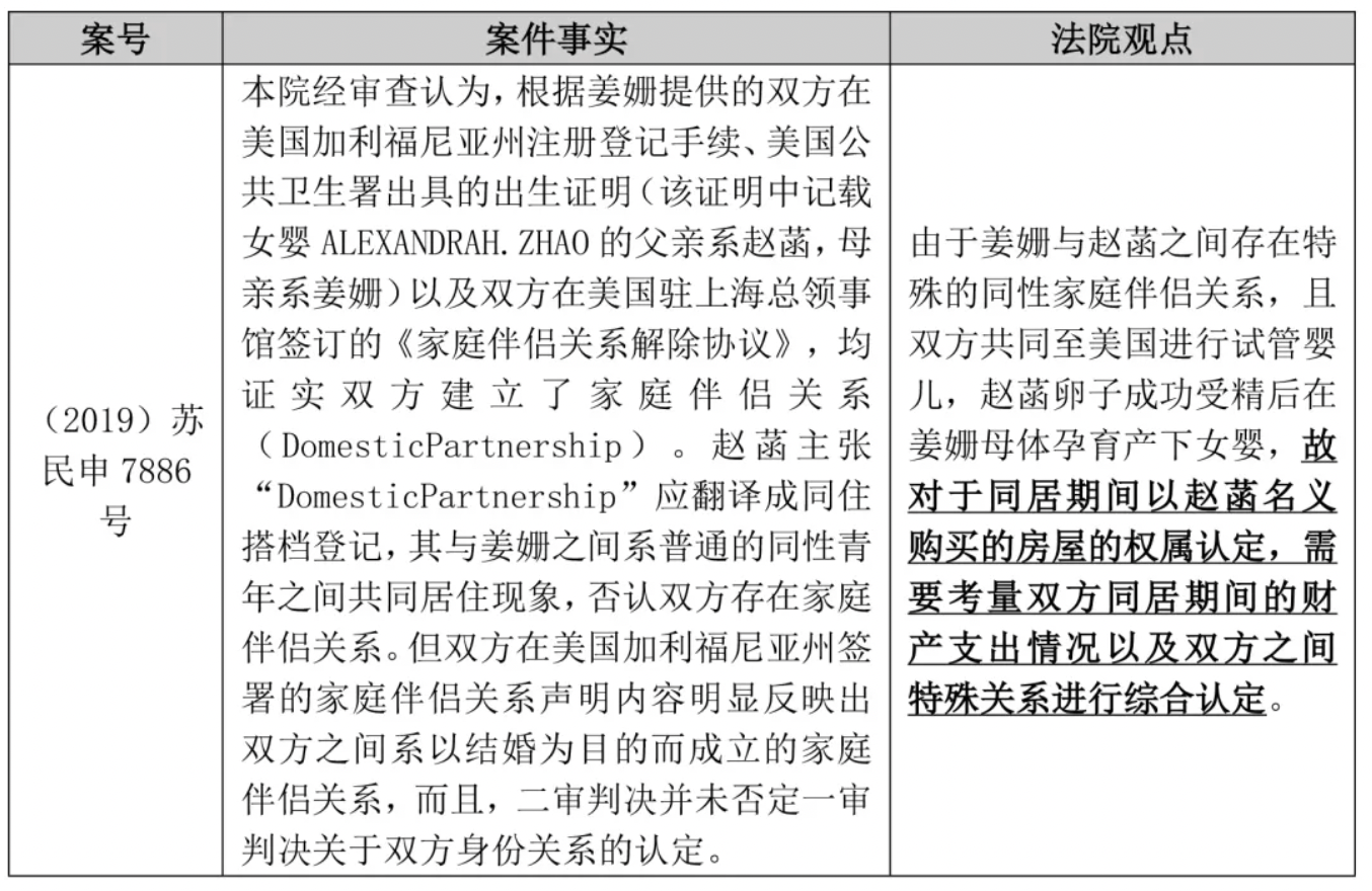 二、同性伴侣在大陆地区财产效力的司法实践