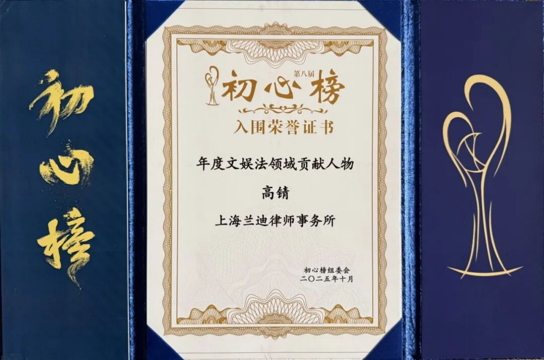 Recently, the finalist list for the 8th “Original Aspiration Awards”—a major and influential ranking in the film and television industry established under the guidance of the China Television Drama Production Industry Association and the Capital Radio and Television Program Producers Association—was officially released. With its long-standing credibility and forward-looking perspective, the award has been regarded as a “barometer” for trends in content development and talent recognition in the film and television sector. Lawyer Gao Qiang, Senior Partner at Landing Law Offices, stood out from intense competition with his extensive practical experience and outstanding service capabilities in the cultural media and entertainment industries, earning a place as a finalist in the Entertainment Law Contribution category.