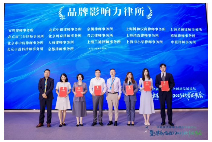 同时,兰迪律师事务所高级合伙人徐明妍律师入选《精品法律服务品牌指南(2025):竞争法领域》律师名录,并荣获“品牌之星:领先律师”;兰迪律师事务所高级合伙人张冰律师,合伙人胡俊成律师入选《精品法律服务品牌指南(2025):文娱体育领域》律师名录,分别荣获“品牌之星:实力律师”和“品牌之星:新锐律师”。