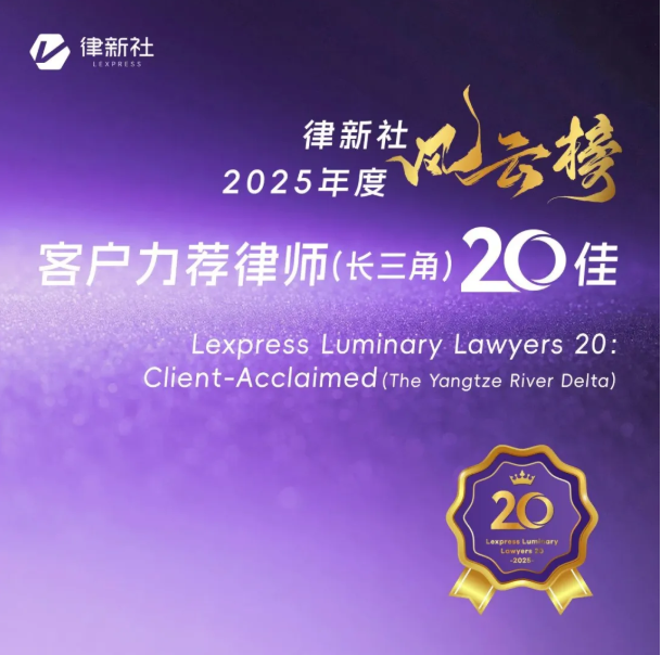 “律新社2025年度风云榜:客户力荐律师(长三角)20佳”由申报审核、专家评审、客户满意度调查等多维度评估后生成,旨在展现律师的专业实力与服务温度,树立标杆人物。
