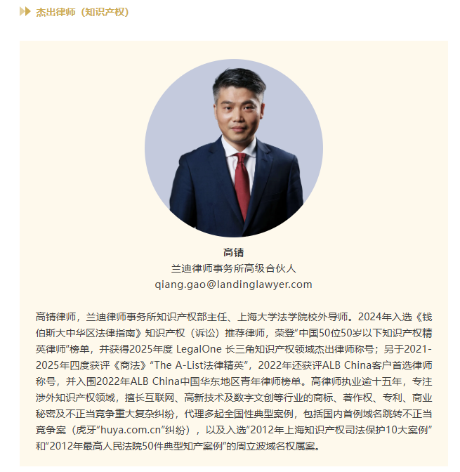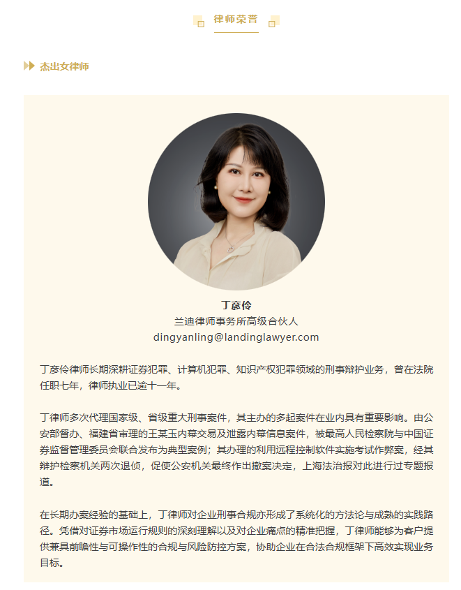 兰迪律师事务所荣获“杰出规模化律师事务所”,兰迪律师事务所温州分所荣获“优秀综合实力律师事务所”。兰迪律师事务所高级合伙人丁彦伶律师荣获“杰出女律师”,汤翔律师荣获“杰出律师(银行与金融)”,田磊律师荣获“杰出律师(刑事业务)”,高锖律师荣获“杰出律师(知识产权)”。
