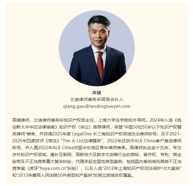 2026年3月11日,国际权威评级机构《法律500强》(The Legal 500)正式揭晓Legal 500 中国精英(China Elite)榜单第二轮入选名单。第二轮评选覆盖北京、上海、广州、成都、重庆五座核心城市,聚焦知识产权、公司与并购、TMT、商事争议四大核心业务领域,凭借在法律服务领域的卓越业绩,兰迪执行主任、高级合伙人丁学明律师,高级合伙人高锖律师入选上海精英-TMT(包括知识产权和AI)榜单,兰迪成都分所主任张林律师入选成都精英-商事争议榜单,兰迪重庆分所管理合伙人彭茂律师入选重庆精英-商事争议榜单。