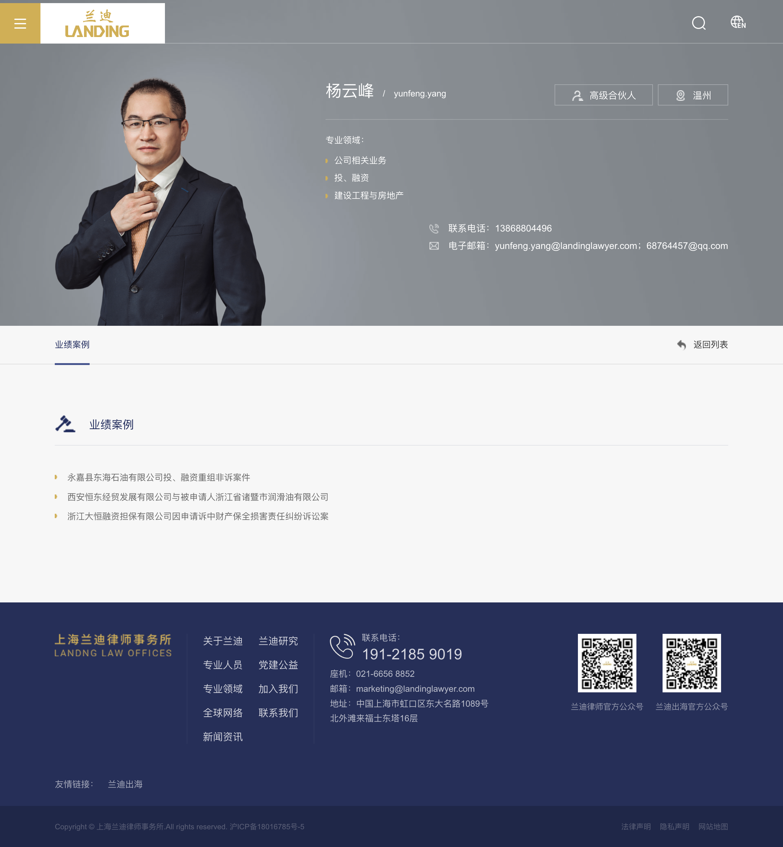 电子邮箱:yunfeng.yang@landinglawyer.com;68764457@qq.com