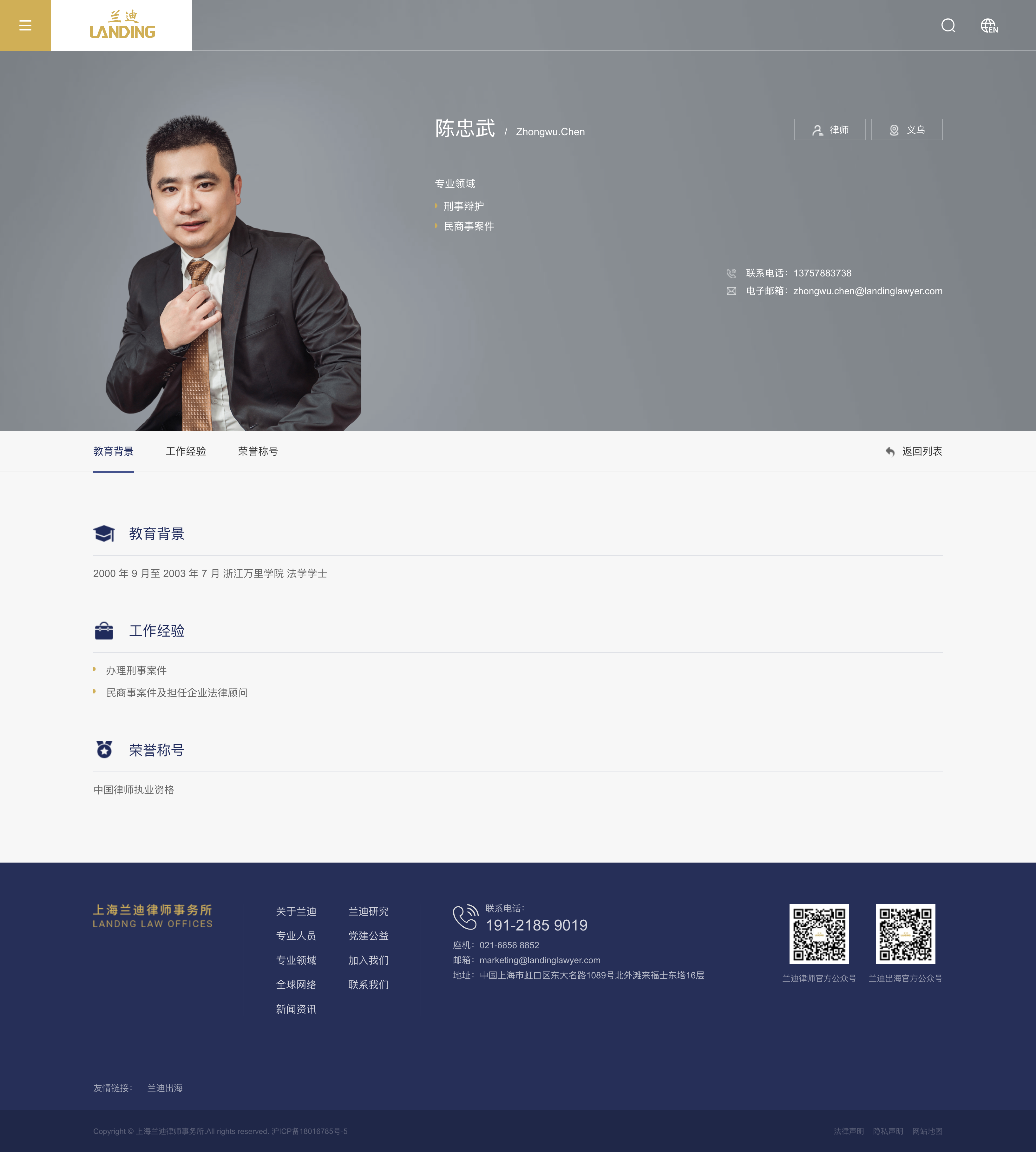电子邮箱:zhongwu.chen@landinglawyer.com