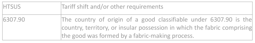 例如在N345782案[3]中,在对一款汽车座椅靠垫收纳袋的原产地判定中,其布料在中国完成针织、染色、印花并涂上PVC涂层,在柬埔寨经过裁剪、缝制布料等,最终加工成品,根据《联邦法规法典》第 19 编第 102.21 (c)(2) 条和(e)条款特殊的税则改变要求“可归入税目 6307.90 的商品的原产地是构成该商品的织物通过织物制造工序形成的国家、地区或岛屿属地”[4]。因此,汽车座椅收纳袋的原产地是中国。