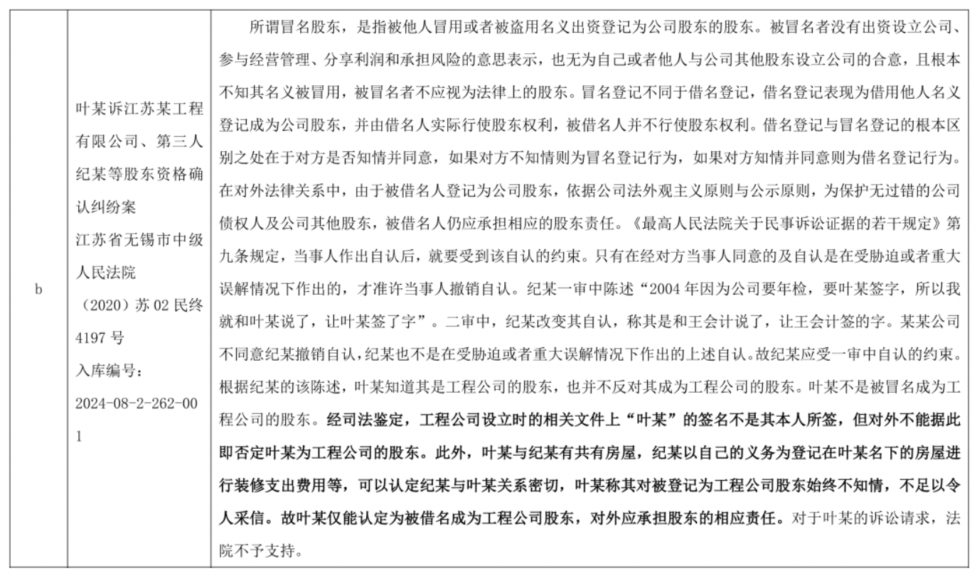 具体而言,法院将结合多方面因素综合判断:一是被登记股东是否实际知晓增资事宜及自身股东身份被用于增资登记;二是冒名者持有被登记股东身份材料是否具有合理解释;三是双方是否存在股权代持、亲属关联、业务合作等利益牵连关系;四是被登记股东是否存在参与公司经营、获取分红、事后追认等可推定其知情的行为。仅有签字非本人签署的鉴定结论,不足以单独成立冒名增资的认定。